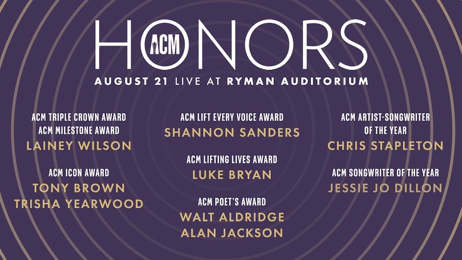 THE 17TH ANNUAL ACADEMY OF COUNTRY MUSIC HONORS™ WILL TAKE PLACE WEDNESDAY, AUGUST 21 AT THE HISTORIC RYMAN AUDITORIUM IN NASHVILLE, TN AND WILL ALSO HONOR STUDIO RECORDING AWARD WINNERS, INDUSTRY AWARD WINNERS, AND SONGWRITERS OF THE YEAR WINNERS FROM THE 59TH ACM AWARDS CYCLE