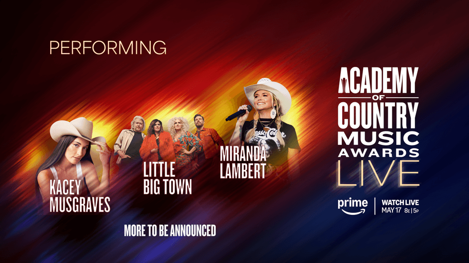 NASHVILLE, Tenn. — April 7, 2026 — Today, the Academy of Country Music® (ACM), Prime Video, and Dick Clark Productions (DCP) announced the next round of powerhouse performers set to take the stage at the 61st Academy of Country Music Awards, including Kacey Musgraves, Little Big Town, and Miranda Lambert with many more unforgettable performances to be revealed in the coming weeks. They join previously announced superstar performers Cody Johnson, Lainey Wilson, and Riley Green. The 61st ACM Awards will stream live exclusively for a global audience across 240+ countries and territories on Prime Video on Sunday, May 17, 2026, at 8 p.m. ET / 7 p.m. CT / 5 p.m. PT from the world-renowned MGM Grand Garden Arena in Las Vegas, Nevada. Fans will also be able to watch the broadcast on the Amazon Music channel on Twitch, as well as in the Amazon Music app.